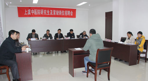 研究生及紧缺岗位毕业生招聘工作。本次招聘工作共有64名研究生及19名本科生报名,经过资格审查,36名参加应聘工作,最终录用了骨伤、肿瘤、消化、神经、中药等专业的6名研究生及紧缺岗位院前急救岗位的1名本科生。图为面试现场。(办公室)